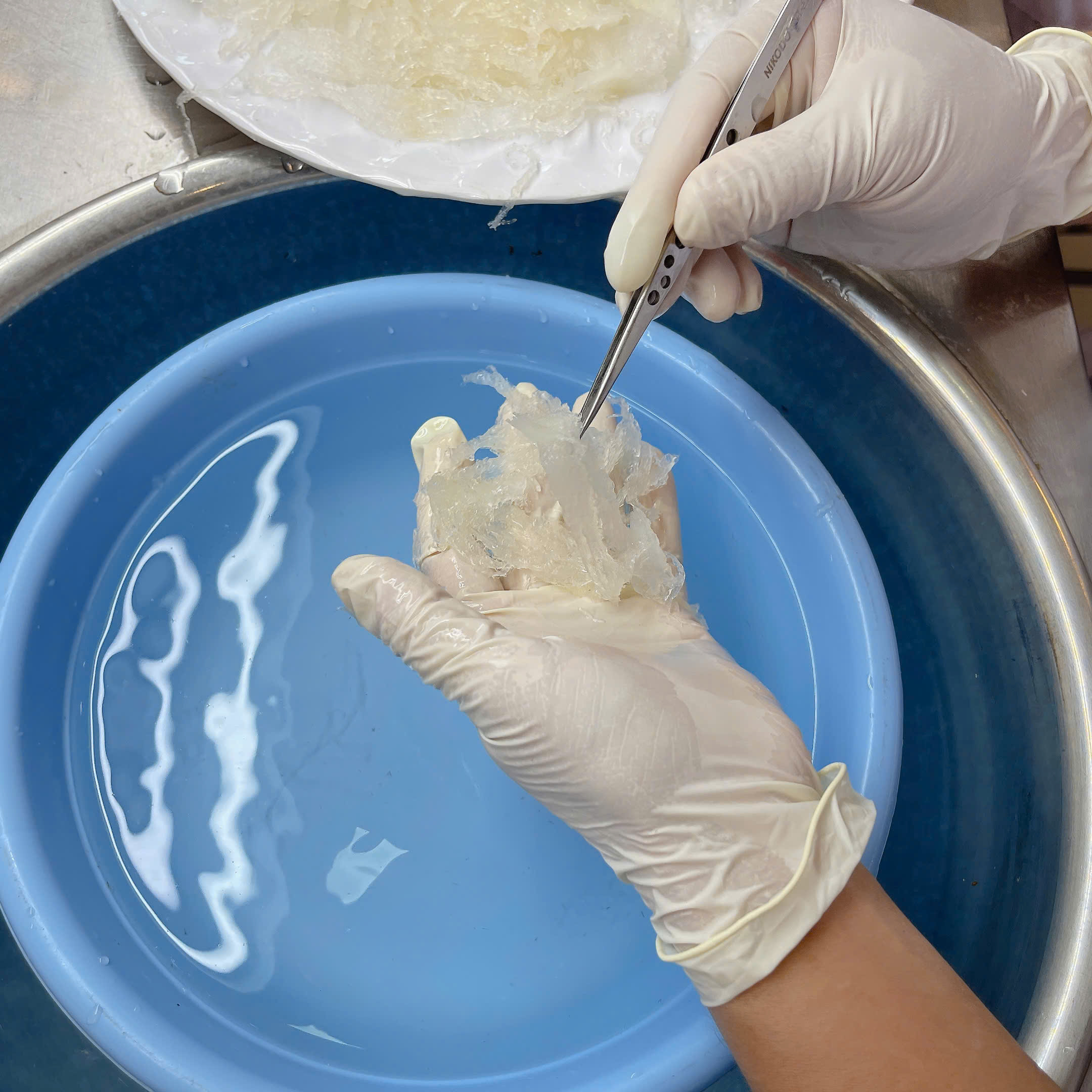 Bước 4: Loại bỏ tạp chất và làm sạch yến sào.